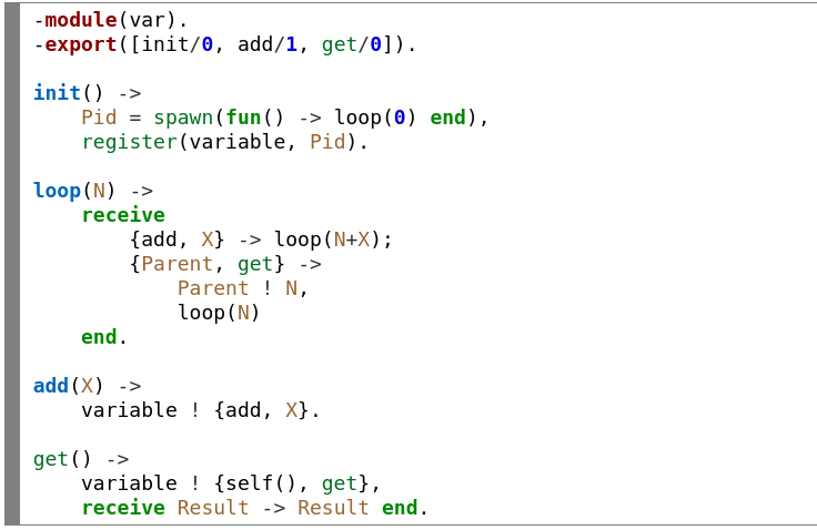 The following screenshot shows a basic Erlang actor implementation with state management: